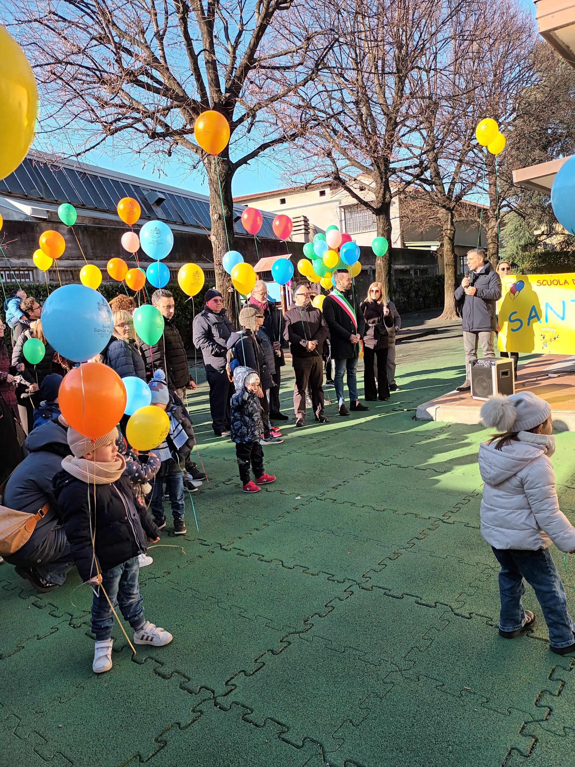 Ringraziamo di cuore tutti coloro che sono intervenuti e hanno partecipato: don Renato che ha celebrato la Messa, i vertici del Consiglio di Amministrazione della Scuola con il Presidente dott. Davide Sironi, le autorità dell’Amministrazione Comunale con il sindaco dott. Luca Veggian, gli assessori dott. Ian Farina,  dott. Cesana Fabio, dott.ssa Rossella Pozzi e la responsabile LL.PP Raffaella Di Losa, il dottor commercialista Mauro Meregalli che da anni è vicino alla scuola, il dott. Ruggero Redaelli  presidente della BCC  Carate e Treviglio che è intervenuto con un significativo discorso ricordando la presenza nella banca nella storia della scuola e infine la ex presidente della scuola Dionisia D’Angelo che riceverà a breve il premio della benemerenza civica che il sindaco le conferirà il giorno 6 dicembre 2025 per l’impegno profuso in tanti anni a favore dell’opera educativa.